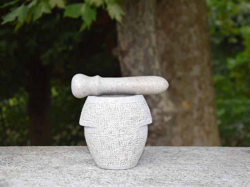 Represent a worldwide cultural heritage, the most primitive device for grinding wheat and other edible seeds. To create a similar device, the primitive man must have been quite capable 45,000 years ago. The piece that is designed to grind the mortar’s contents reminds us of Omphalos – the invigorating source of energy that the ancient Greeks proclaimed to be the centre of the Earth. The described object should be used nowadays in every household, so that mankind would return once more to vegetarian food.