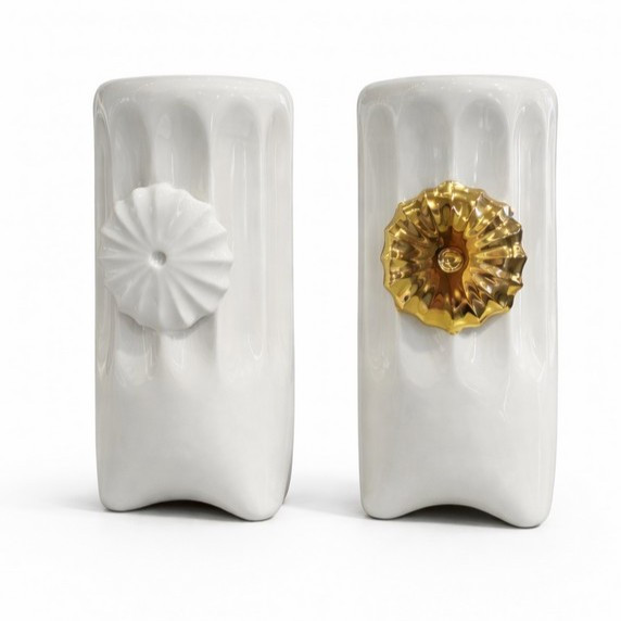 (ø = 8 cm, v = 16,5 cm, porcelan, pozlata (18 karatno zlato), bela glazura)